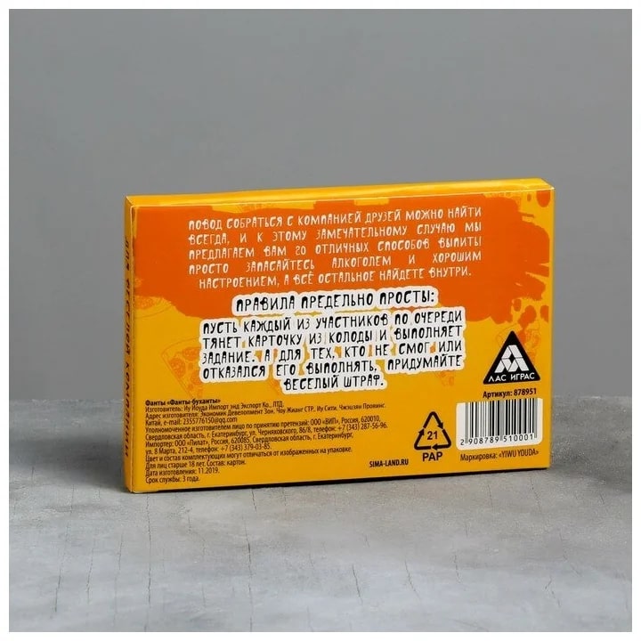 Купить игра для компании "фанты буханты" 20 карт от 100 руб. с доставкой до пункта выдачи в Абазе. Интернет магазин ДекаМаркет. Оплата при получении.